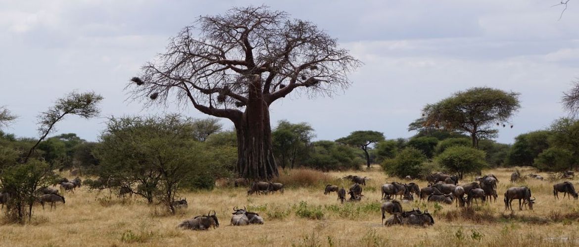 Weißbart-Gnu in der SerengetiNach einem ausgiebigen Frühstück fahren zu einer Tagessafari zum Tarangire Nationalpark. Das Herz des Parks bildet der Tarangire River der auch das Landschaftbild formt. Wir werden unser Mittagessen (Lunch) naturnah im Nationalpark einnehmen, gefolgt von einer Pirschfahrt am Nachmittag. Tarangire ist ein Park mit einer atemberaubenden Landschaft in der uralte Affenbrotbäume „Baobabs“ die größten Elefantenherden Afrikas überragen. Der Tarangire Nationalpark ist berühmt für die dramatische Interaktion zwischen Raubtieren und Beute in einem der Wasserlöcher des Parks. Im Park können Elefanten, Elenantilopen, Oryx-Antilopen, Lesser-Kudus und viele weitere Tierarten beobachtet werden.